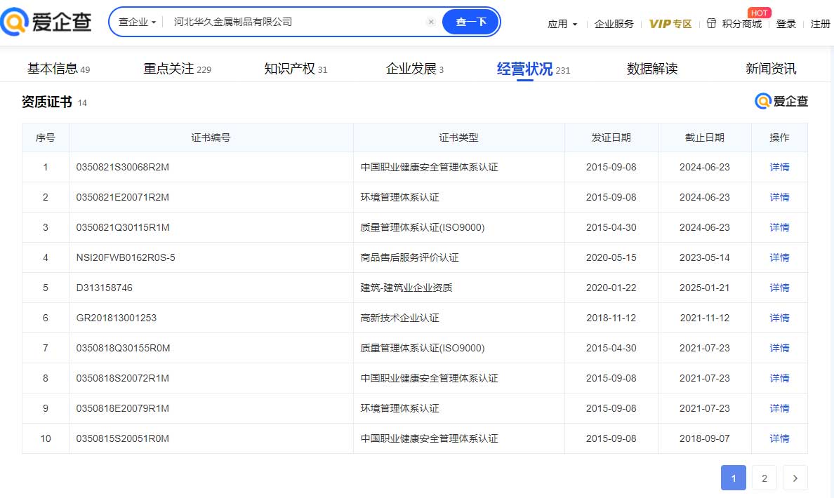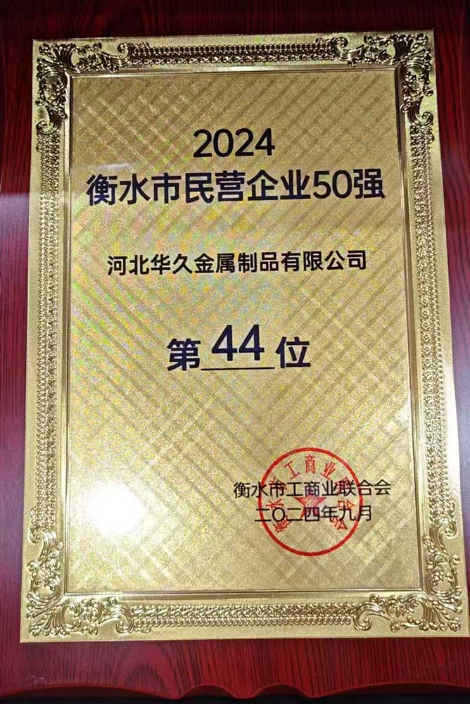 河北華久憑借其專業(yè)化的技術(shù)、精細(xì)化的管理,榮獲一稱號(hào)體現(xiàn)了公司在金屬制品領(lǐng)域的專注與卓越。